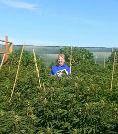 Package and nitrogen flush bulk cannabis flower into large custom pouches.